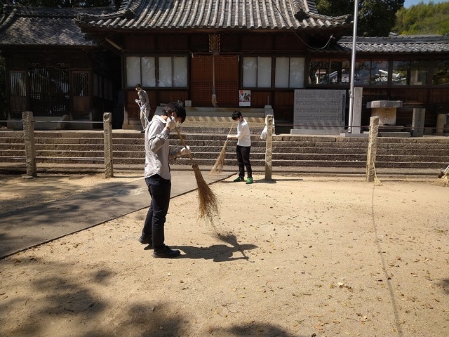 神社の清掃をさせていただきました。子どもも大人も一緒に和やかに作業させていただきました。