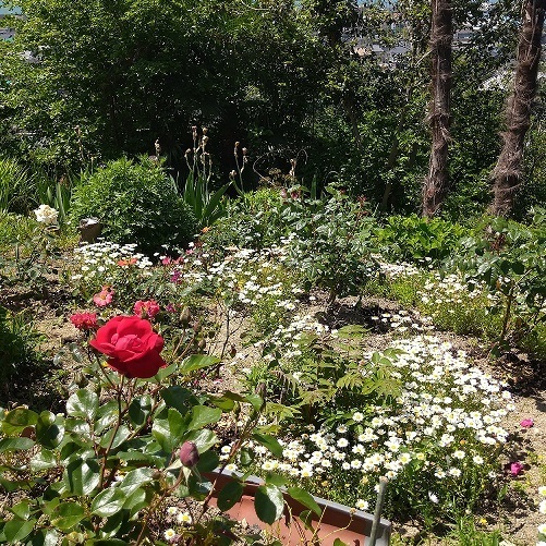 今、柳津の丘は、紫陽花やバラなど季節折々の花で満開です。ぜひ足を運んでみてください♪