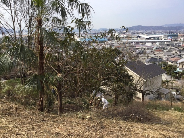 2月より福山市柳津町の高台にある、10年以上放置された畑や、持ち主様の高齢により維持が困難になった畑などの整備を始めました。松永湾が一望できる素晴らしい場所です。ここを皆様の憩いの公園にしたいと思っております。