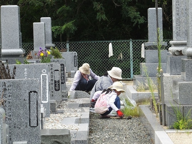 お盆前に墓苑の清掃をさせていただきました。ゴミや草取りでキレイになり、ご先祖様も喜んでおられると思います。